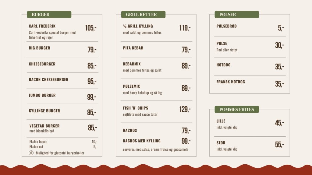 OBS. køkkenet lukker kl. 19:30 – Alle dage